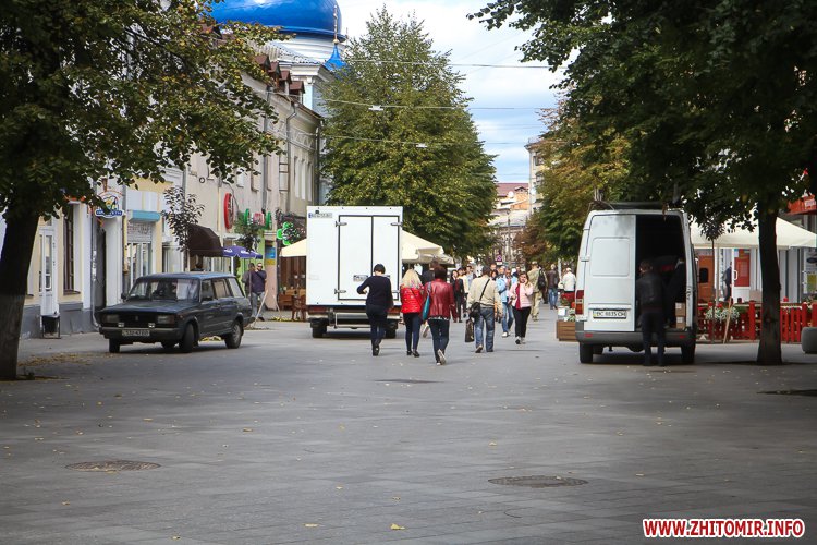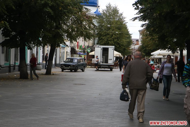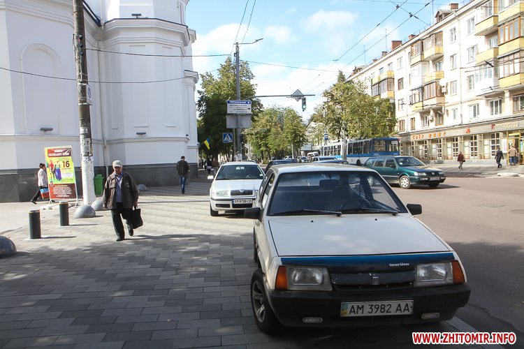 15 вересня фотограф Житомир.info годину, з 12.00 до 13.00, полював на автівки, які їздити по оновленій Михайлівській.