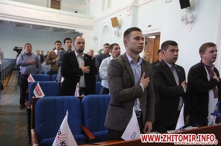 Як повідомляв Житомир.info, зранку 14 вересня перед початком позачергової сесії Житомирської міської ради під стінами муніципалітету відбувся мітинг. Під час сесії депутати переглянули фільм про Ольжича та виділили 12 млн грн на зарплату працівників Житомирського ТТУ та 11 млн грн на валідатори.