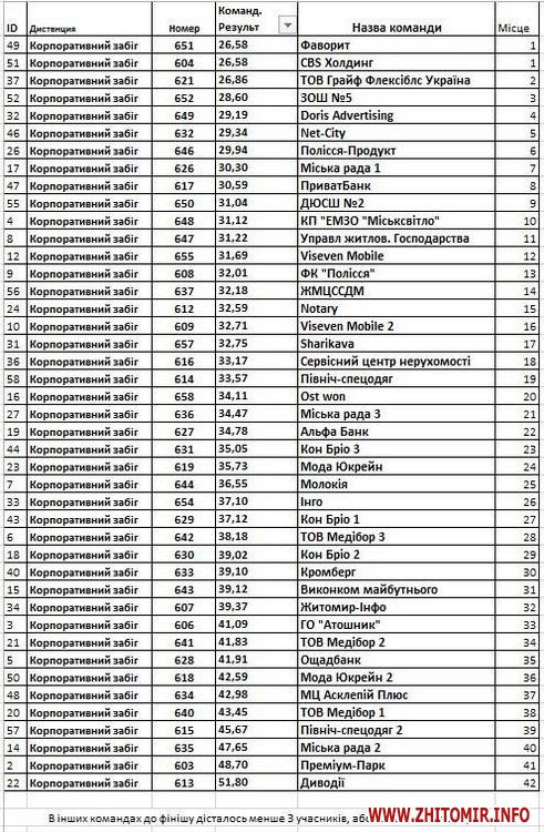 Після виправлення помилки таблиця з переможцями виглядає так (зі сторінки Космічний напівмарафон Житомир у фейсбук):
