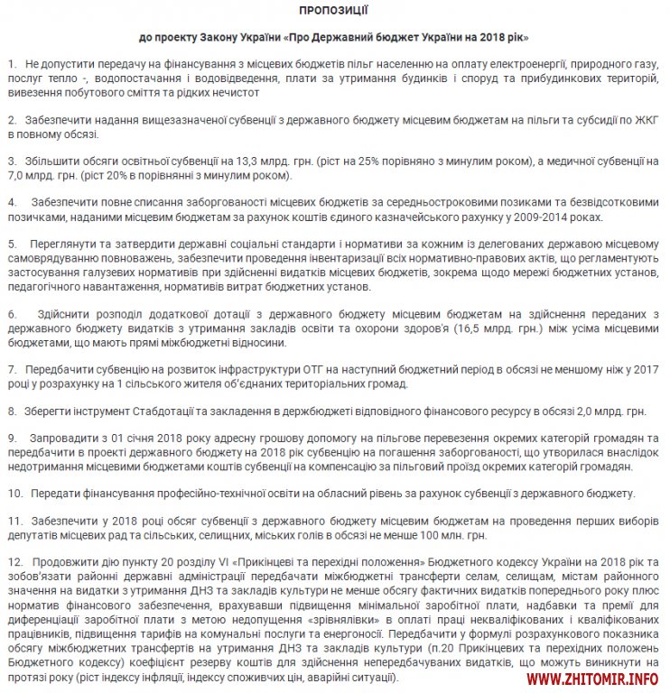Пропозиції до законопроекту опубліковані на сайті Житомирської міськради