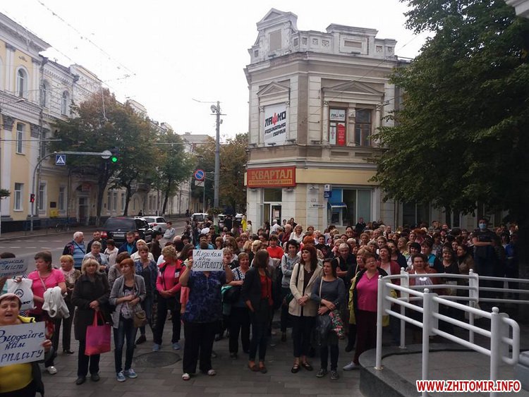 21 вересня близько сотні працівників медичних закладів Житомира прийшли до міської ради з вимогою виплатити зарплату.