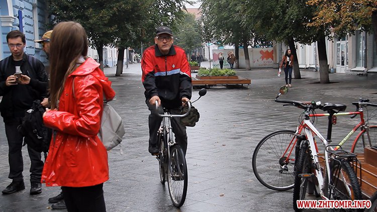 «Я їжджу на роботу, з роботи, по робочим питанням, бо локацій по місту багато і треба встигати. Коли поїздив по місту, то помітив, що їздити містом не можливо. І тут в нагоді день мобільності, ми збираємося. Я розумію, що є такий запит у користувачів велосипедів. Але їм простіше - у них колеса більші, у мене вони дуже маленькі і всі недоліки асфальту відчуваються. Треба це робити, треба виявляти основні маршрути, звідки їдуть і у які дні і створювати інфраструктуру, як це є гарним прикладом у європейських країнах», - розповів головний архітектор Житомира Юрій Безбородов.