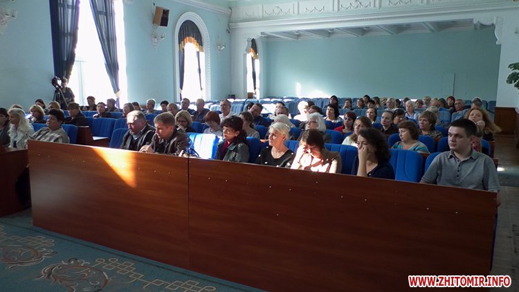 Представники усіх медичних закладів Житомира зібралися у міській раді 22 вересня, щоб почути від міського голови, як вирішується питання щодо виплати їм заробітної плати. Поспілкуватися з медиками приїхала заступник голови Комітету Верховної Ради України з питань охорони здоров'я Ірина Сисоєнко.