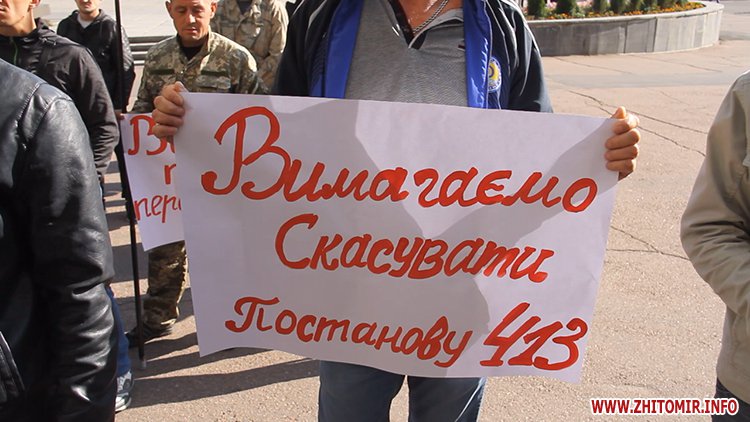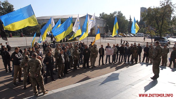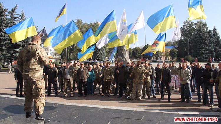 27 вересня від ранку близько сотні АТОвців пікетують Житомирську облдержадміністрацію. Серед них – колишні військовослужбовці з Житомира, Бердичева, Коростишева, Коростеня, Новограда-Волинського та Любара. Мітингувальники кажуть: подібні акції наразі проходять по всій Україні, головна вимога пікетуючи – скасувати постанову Кабміну, яка заморозила видачу земельних ділянок учасникам АТО.