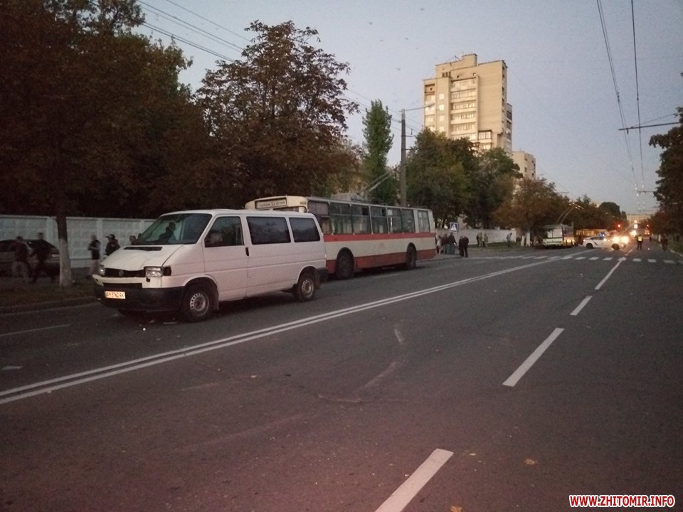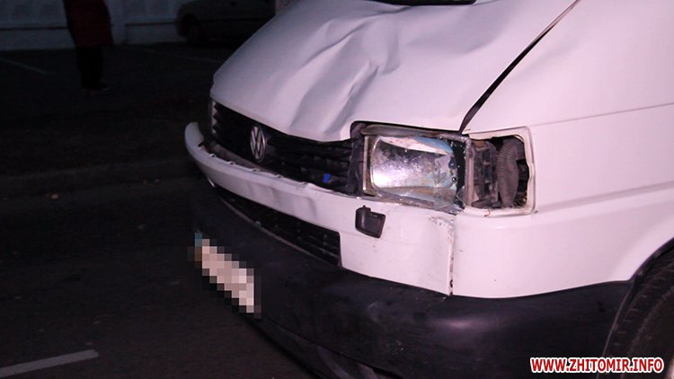 «Близько 18 години по вулиці Чуднівській в обласному центрі трапилас ДТП, внаслідок якої постраждали троє дітей. За попередніми даними водій автомобіля Volkswagen Т4, житомирянин 1949 р.н., рухаючись на виїзд з обласного центру, здійснив наїзд на трьох хлопчиків (двоє 12 років, один 13 років), які переходили дорогу на нерегульованому пішохідному переході. Усі троє пішоходів з тяжкими травмами були госпіталізовані. Обставини з’ясовуються у рамках розпочатого досудового розслідування за статтею 286 ККУ (Порушення правил безпеки дорожнього руху)», – повідомила заступниця керівника прес-служби відомства Ольга Номерчук.