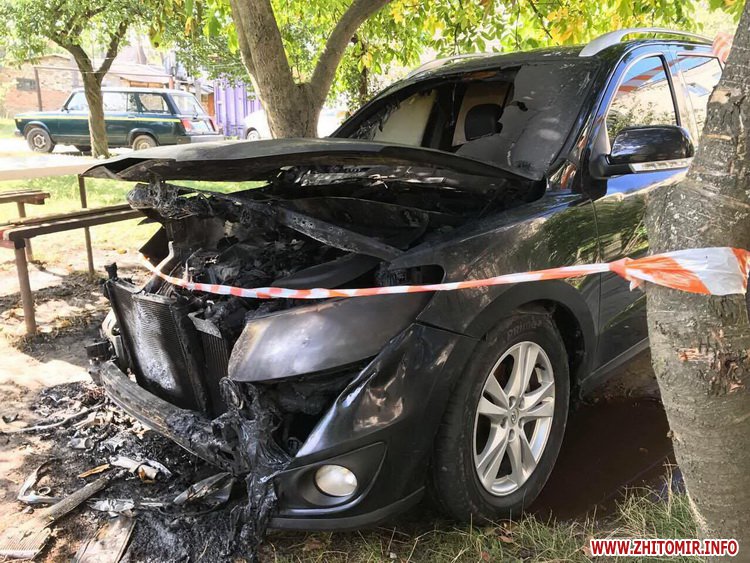 «Уночі 29 вересня до Баранівського відділення поліції надійшло повідомлення про ймовірний підпал автомобіля, що належить жительці смт Першотравенська. На місці інциденту працівники слідчо-оперативної групи поліції з’ясували, що транспортний засіб Hyundai Santa Fe належить 47-річній місцевій жительці та уночі знаходився у дворі багатоповерхового будинку. Пожежа сталася близько 3.00 29 вересня. Працівники УДСНС локалізували загоряння. Вогнем було пошкоджено передню частину автомобіля. Нині триває з’ясування причин та обставин події, попередня правова кваліфікація якої – ч. 2 ст. 194 (Умисне знищення або пошкодження майна) Кримінального кодексу України. Остаточну кваліфікацію буде визначено після висновків фахівців ДСНС про причини пожежі», - зазначили у поліції.