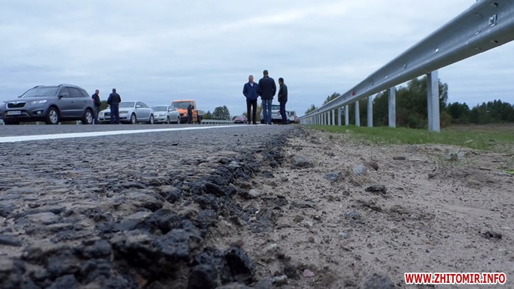 «Тут була бетонка, не придатна для експлуатації. Що зробили? Чеська машина перемолотила основу, вклала, додали цементу, підготували, і два шари асфальтобетону. Поставили зупинки, нанесли розмітку, щоб люди були задоволені, проїжджаючи по цій дорозі», - розповів начальник Служби автомобільних доріг у Житомирській області Геннадій Савченко.