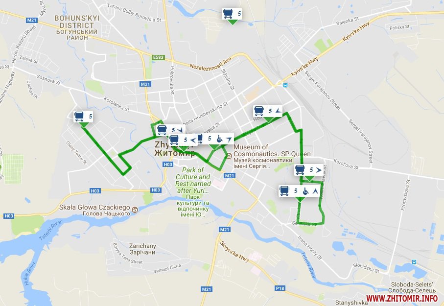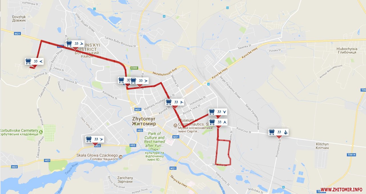 Як повідомляв Житомир.info, ПП «Шеріфф» обслуговує 7 маршрутів: №№ 11 «Красовського – Паперова фабрика», 19 «Лісове – Біомедскло», 19-А «с.Лісове – ЗОК», 30 «Мальованка – Северина Наливайка», 33 «Корабельна – Селецька», 47 «Богунія – майдан Путятинський» і 58 «Мальованка – Діагностичний центр».
