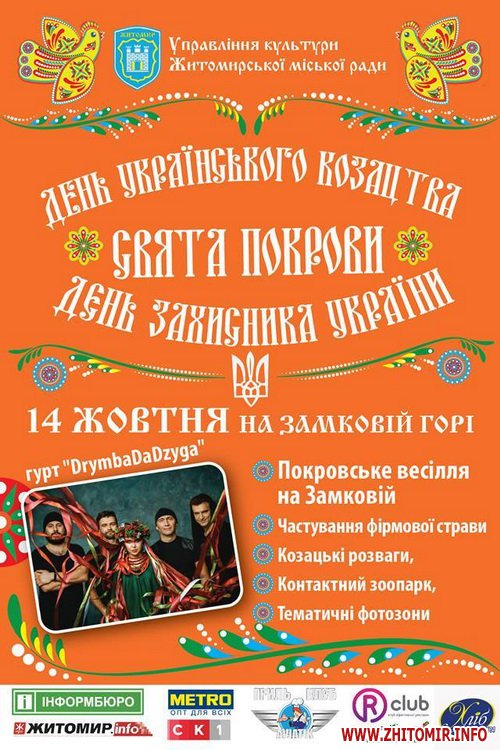 З нагоди відзначення Дня українського козацтва, свята Покрови та Дня захисника України у Житомирі запланована насичена програма заходів.