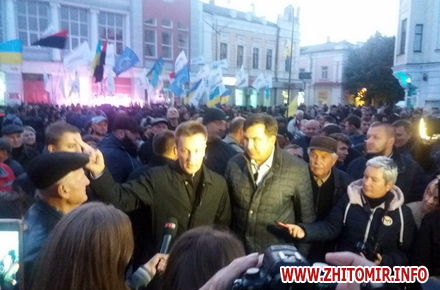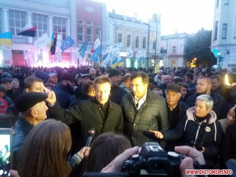 Після прямого ефіру на Житомир.info лідер партії «Рух нових сил» Михайло Саакашвілі вирушив на вулицю Михайлівську в Житомирі, щоб поспілкуватися з журналістами та прихильниками. Зустріч почалася близько 18.40.