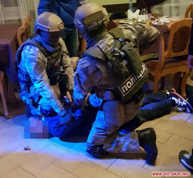 Уже надвечір цього ж дня поліцейські Житомирщини та Київщини спільно затримали трьох підозрюваних у вчиненні розбійного нападу. Двох із них бійці КОРДу вивели просто із зали ресторану, де ті святкували вдалу «операцію».