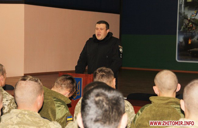 10 жовтня у Житомирі працівники поліції провели зустріч з військовослужбовцями для роз’яснення законодавства щодо особистого володіння зброєю та відповідальність за її незаконне зберігання.