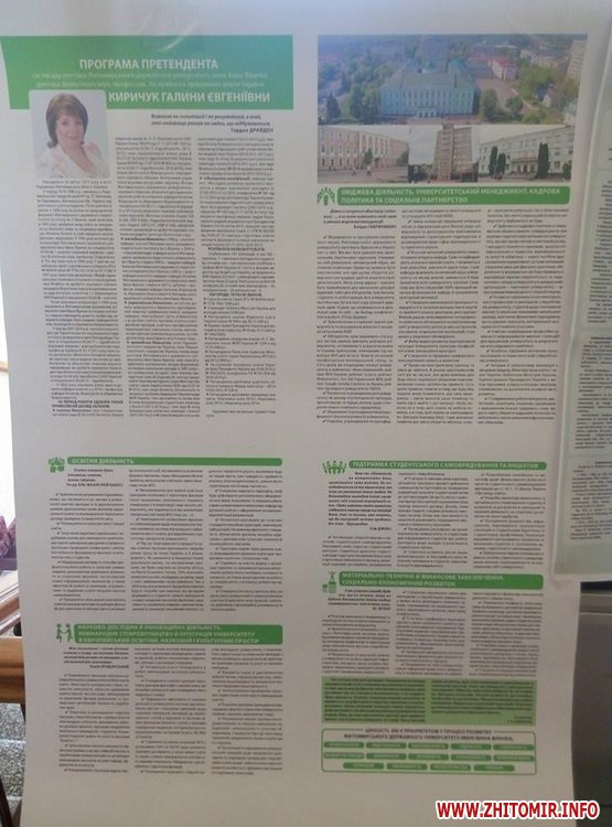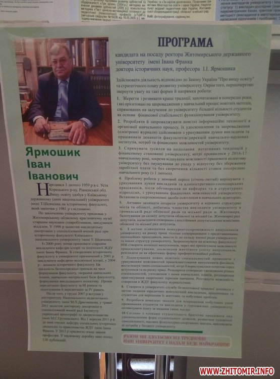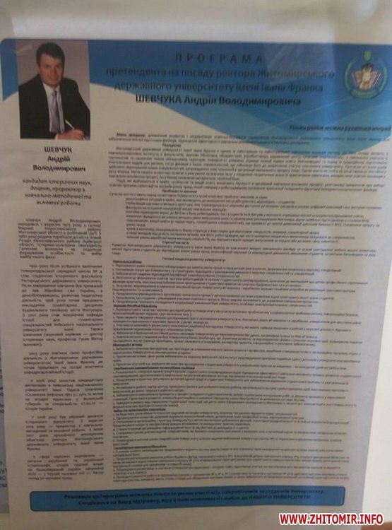 На посаду ректора ЖДУ ім. І.Франка претендує 5 кандидатів: Олександр Музика, Галина Киричук, Іван Ярмошик, Віктор Мойсієнко, Андрій Шевчук. У чотирьох кандидатів на дільниці знаходиться по 2 спостерігачі та у 5-го – один.