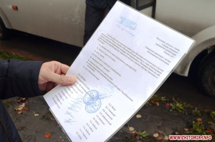 Як повідомляв Житомир.info, 16 травня цього року житомирський виконком проголосував за підвищення вартості проїзду в маршрутках до 5 гривень: перевізників зобов’язали підписати додаткові угоди про безкоштовне перевезення громадян 24 пільгових категорій, після чого мер Сергій Сухомлин підписав рішення виконкому про тариф у 5 грн в маршрутках. Нові тарифи почали діяти з 1 червня 2017 року. На початку жовтня директор ПП «Шеріфф» подав до суду на управління транспорту міської ради для скасування додаткової угоди про безкоштовне перевезення пільговиків. 5 жовтня перевізники страйкували - на третину обмежили вранці кількість автобусів на маршрутах.