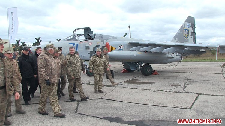Нові зразки озброєння президент оглянув разом із секретарем РНБО Олександром Турчиновим, віце-прем’єр-міністром України Геннадієм Зубком, міністром оборони Степаном Полтораком та начальником Генштабу Віктором Муженком. Окрему увагу привертали до себе літаки-винищувачі.