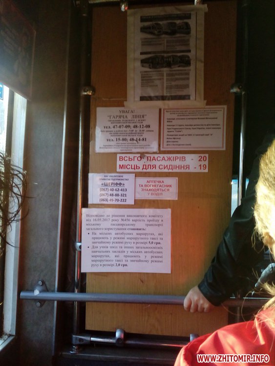 Як повідомляв Житомир.info, 11 жовтня 2017 року на позачерговому засіданні виконком розглядав питання часового обмеження перевезення пільговиків – з 10.00 до 16.00, але для прийняття рішення не вистачило голосів. Після цього перевізники міських автобусних маршрутів вирішили самостійно обмежити безкоштовний проїзд пільговиків: 12 жовтня в маршрутках з’явилися листи з переліком восьми пільгових категорій, яких перевізники погоджуються возити без оплати. 13 жовтня міськвиконком знизив вартість проїзду в маршрутках Житомира з 5 грн до 4 грн, також рішенням виконкому в угоди з перевізниками будуть внесені доповнення: за власний кошт вони возитимуть безкоштовно і без обмежень вісім категорій пільговиків, а інші категорії матимуть право на безкоштовний проїзд з 10.00 до 16.00.