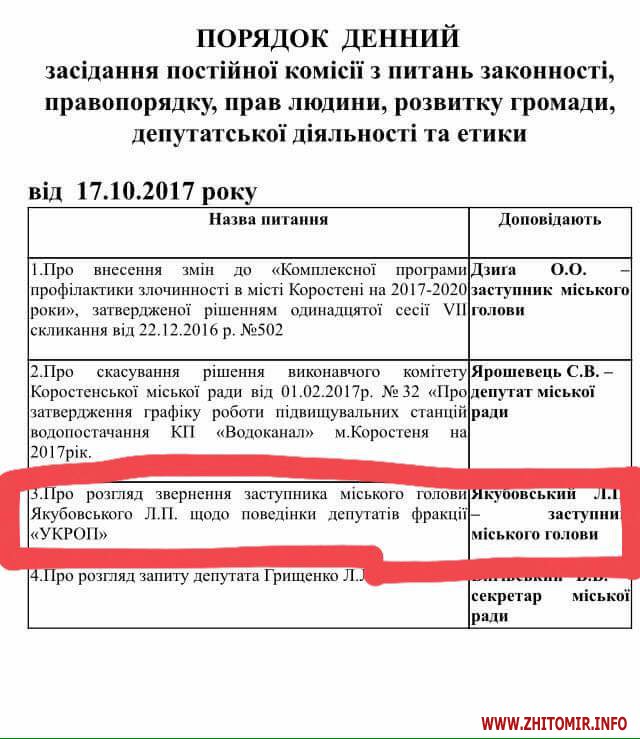 Раніше у коментарі Житомир.info мер Коростеня Володимир Москаленко обіцяв викликати на комісію з етики депутатів «укропівців», які «брехню цю запустили».