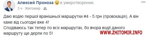 Сподіваюсь, так тепер по всіх маршрутах, бо вчора водії даного маршруту ще дерли по 5!», – пише Олексій Проноза.
