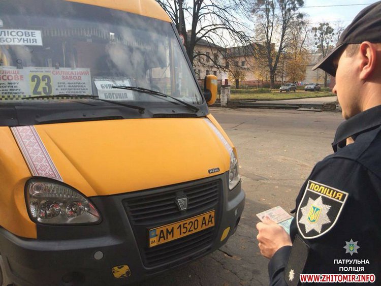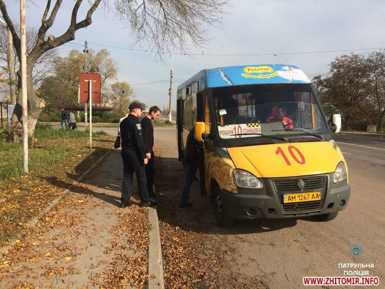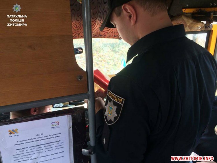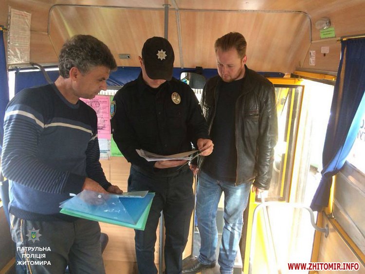 «19 жовтня інспектори відділу безпеки дорожнього руху управління патрульної поліції міста Житомира спільно з працівниками управління транспорту та зв’язку міської ради здійснили ряд перевірок. Основною метою цього рейду є перевірка дотримання перевізниками договорів, а також виконання рішення комітету про встановлення вартості проїзду. У свою чергу, патрульні перевіряли стан маршрутних транспортних засобів та наявність необхідних дозвільних документів у водіїв», - повідомила поліція.