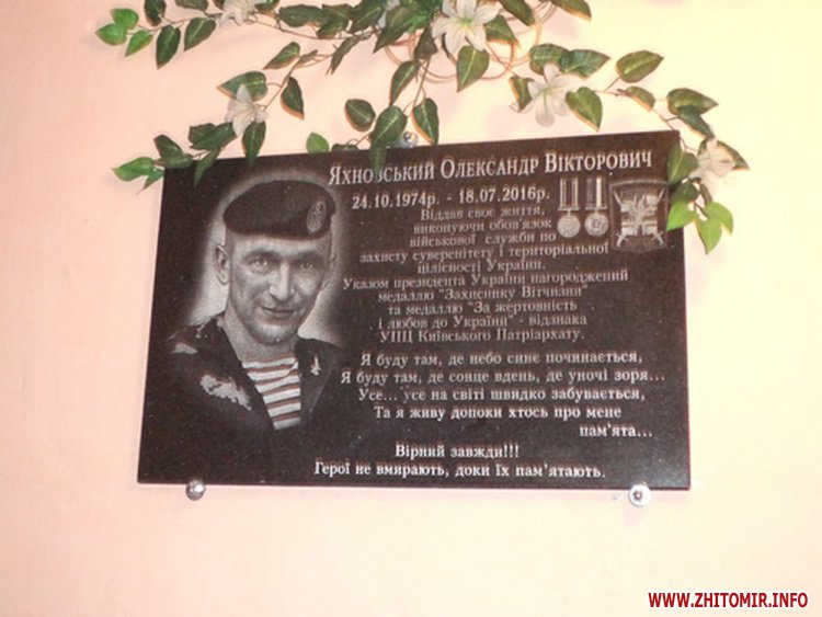 У День народження Героя, 24 жовтня, у Скуратівській школі Малинського району Житомирської області, де навчався Олександр Яхновський, відкрили меморіальну дошку.