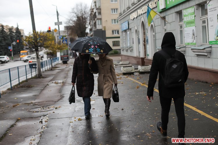 На вихідних житомирян чекає невелике похолодання та дощі. У суботу, 28 жовтня очікується вдень до +7…+9 градусів. У неділю 29 жовтня також +7…+9 градусів, дощитиме.