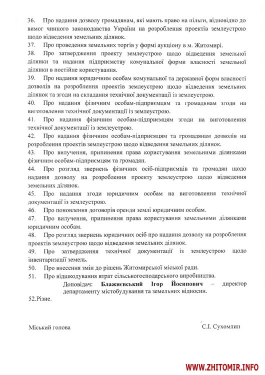 Розпорядження міського голови «Про скликання двадцять восьмої сесії Житомирської міської ради» опубліковане на сайті мерії 30 жовтня.