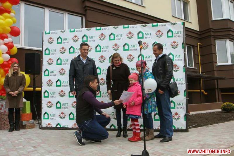 «В обласному центрі продовжує реалізовуватися державна житлова програма надання пільгових довготермінових кредитів для молоді, за якою у жовтні цього року дві молоді сім’ї отримали житло в багатоповерховому будинку по вул. Євгена Рихліка, 11 в Житомирі, три перші секції якого щойно введені в експлуатацію. Міський голова Житомира Сергій Сухомлин разом з головою регіонального управління Держмолодьжитла Павлом Шестопаловим привітав щасливих мешканців нового житлового комплексу і вручив їм документи на квартири», - йдеться у повідомленні.
