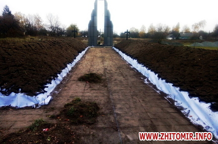 У Народицькому районі Житомирської області робітники укріпили та підсипали кургани та могили меморіалу Героям Базару, а також закріпили хрести. Наразі проводяться роботи з монтажу нових бордюрів.