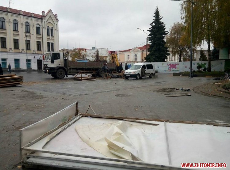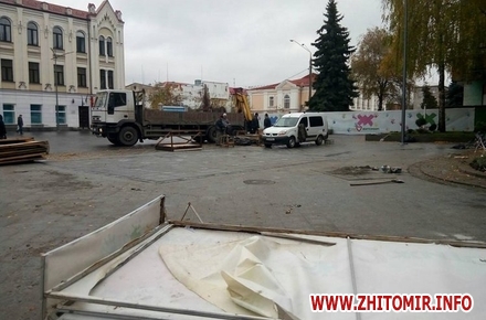 2 листопада навколо фонтану на пішохідній Михайлівській у Житомирі робітники зняли будівельний паркан.