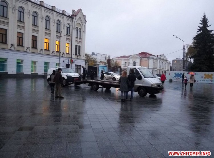 Близько 16.30 2 листопада з єдиної пішохідної вулиці у Житомирі – Михайлівської, евакуатор забирав автомобіль.
