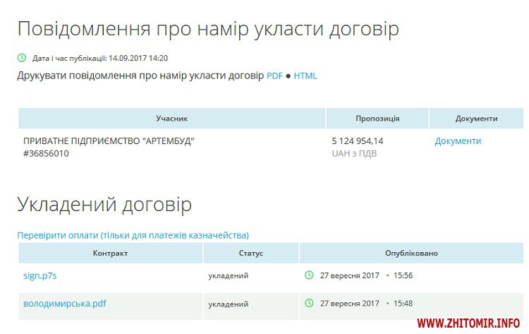 Згідно з інформацією з сайту електронних закупівель Prozorro, за капітальні ремонти по вулицях Володимирській і Свято-Миколаївській ПП «Артембуд» отримає 8,8 млн грн. При чому, ремонт Свято-Миколаївської триватиме і в 2018 році.