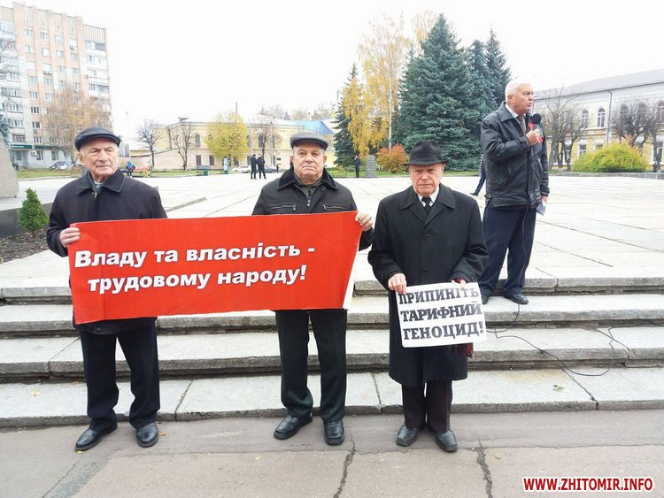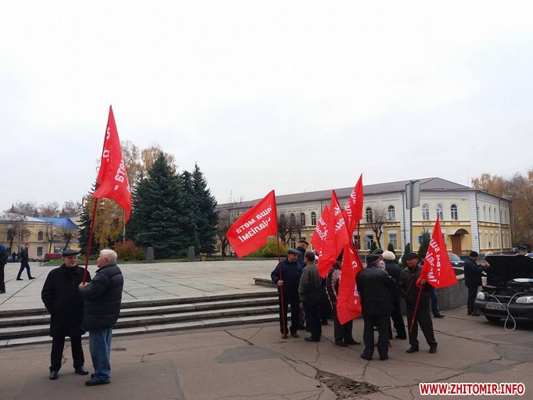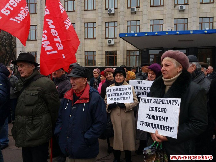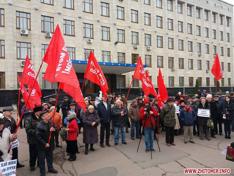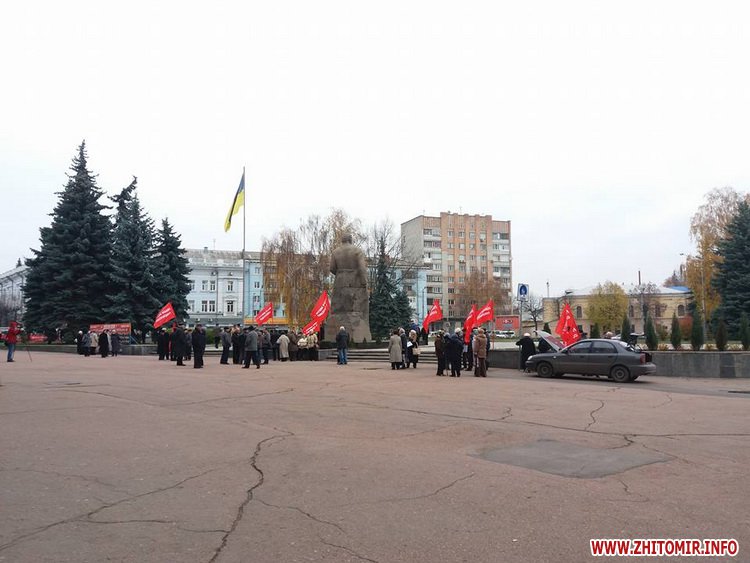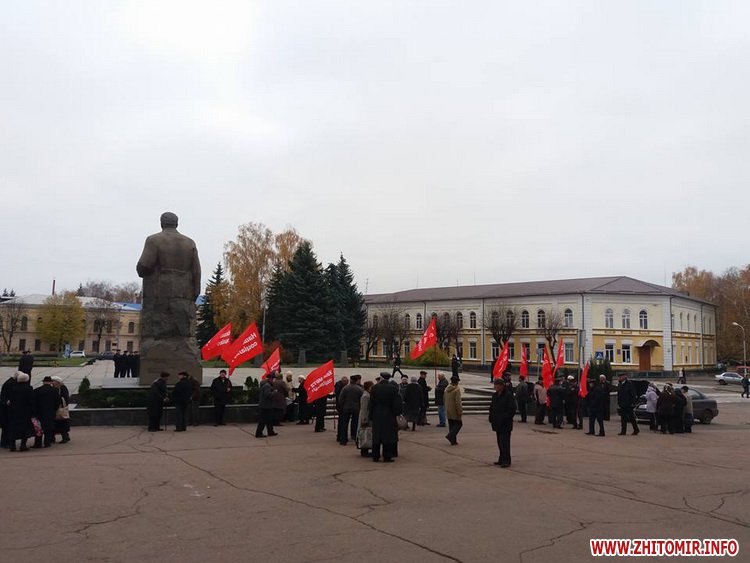 У Житомирі 7 листопада на майдані Корольова зібралися пенсіонери з плакатами та червоними транспарантами.