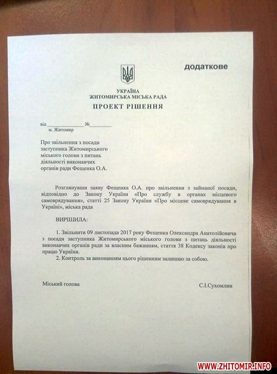 Як повідомляв Житомир.info, 1 листопада житомиряни зареєстрували петицію-звернення до депутатів міської ради з проханням не звільняти Дмитра Ткачука, яка за добу зібрала необхідну кількість підписів.