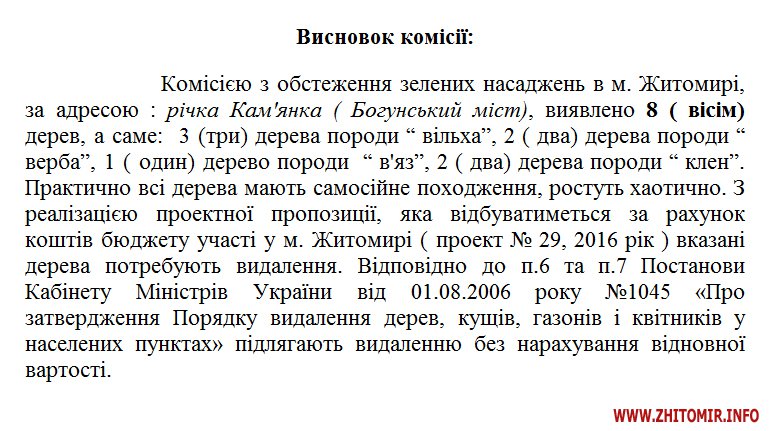 У Житомирі хочуть дозволити видалити чи пересадити 47 зелених насаджень за чотирма адресами.