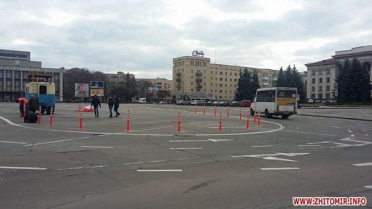 21 листопада на майдані Соборному у Житомирі почали встановлювати пластикові помаранчеві стовпчики для кращої навігації.