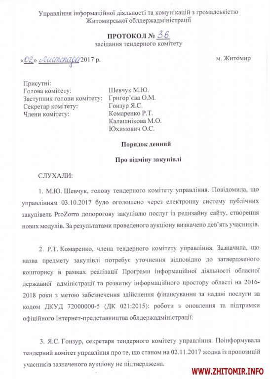 Управління інформаційної діяльності та комунікацій з громадськістю Житомирської облдержадміністрації 3 жовтня оголосило тендер – редизайн сайту, створення нових модулів. За це були готові заплатити 50 тисяч гривень.