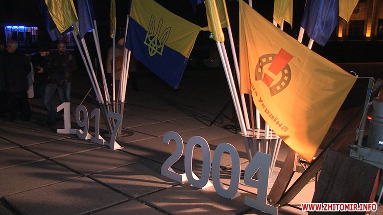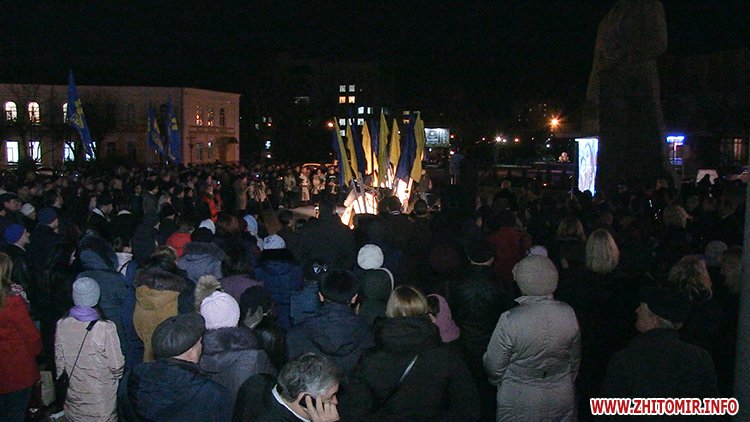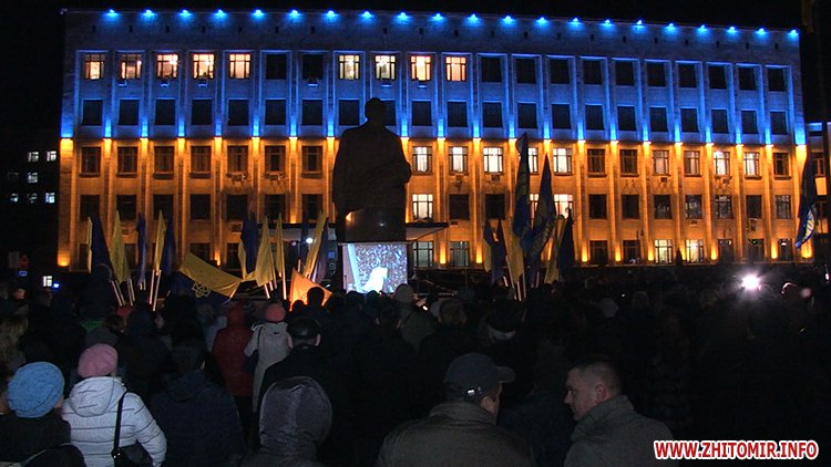 Як повідомляв Житомир.info, о 18:00 на майдані Корольова в Житомирі розпочалося віче з нагоди відзначення Дня Гідності та Свободи.