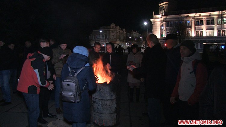 Після цього учасники мітингу переглянули архівне відео про житомирський Євромайдан. Захід продовжився у форматі «вільного мікрофону» та неформальних розмов біля «революційної бочки».
