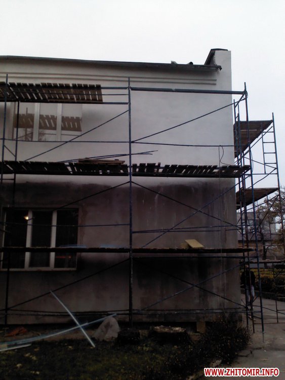 До речі, зі слів батьків, станом на 23 листопада роботи в даному садочку завершені лише частково, біля будівлі встановлене риштування, але роботи не ведуться місяця з два (фото нижче). У тих групах, де підрядник замінив вікна і утеплив стіни, стало значно тепліше.