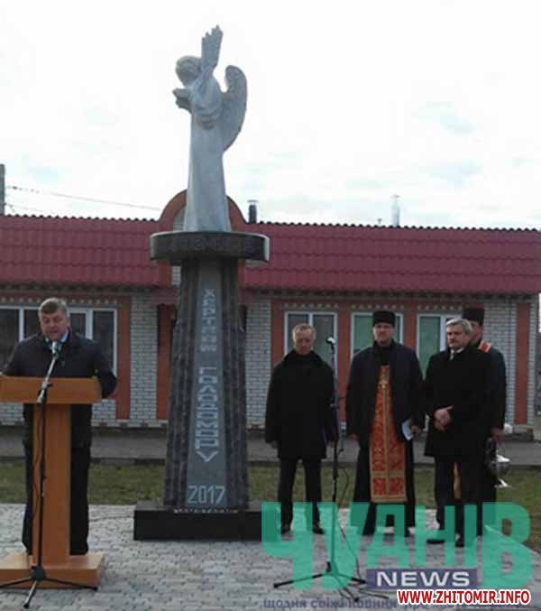 Як повідомляв Житомир.info, 14 жовтня, на свято Покрови у смт Новогуйвинське Житомирського району відкрили пам’ятник ліквідаторам на ЧАЕС. 12 жовтня у селі Волосівка Чуднівського району Житомирської області відкрили меморіальну дошку учаснику АТО Олегу Поліщуку.