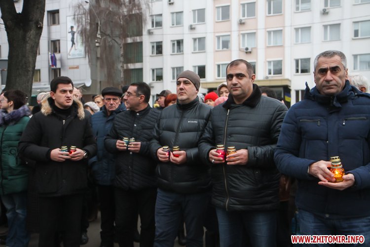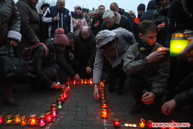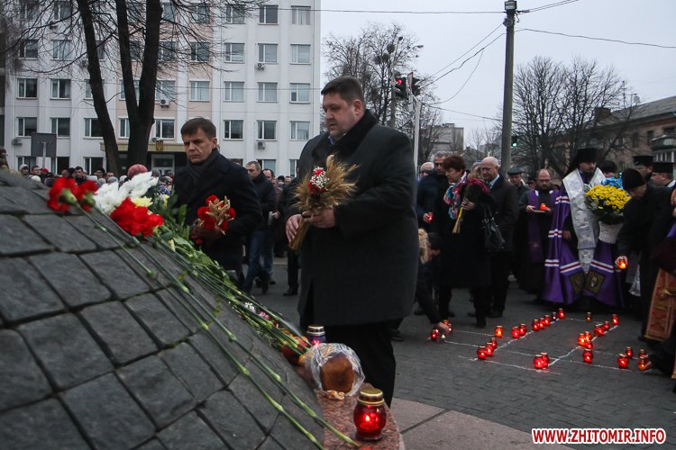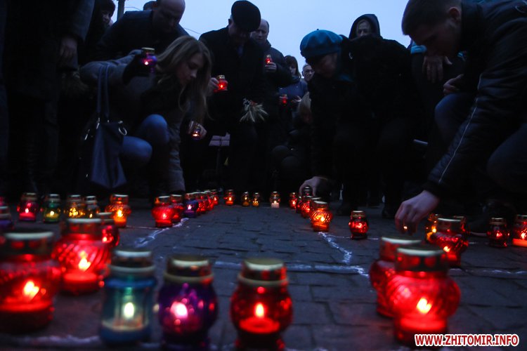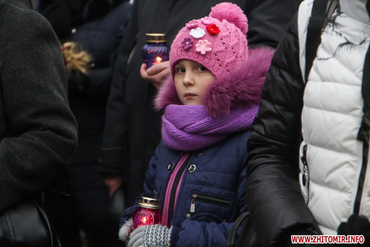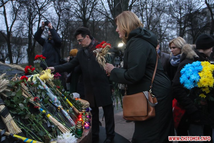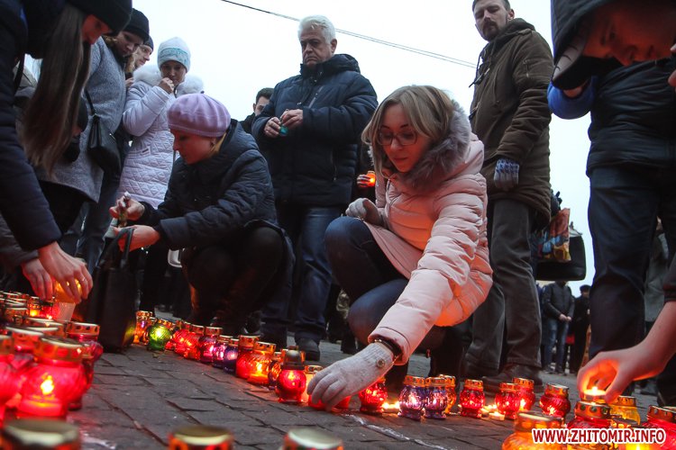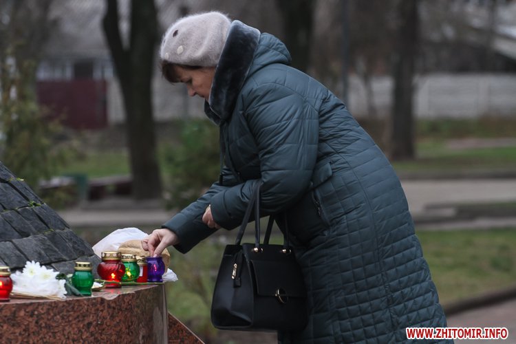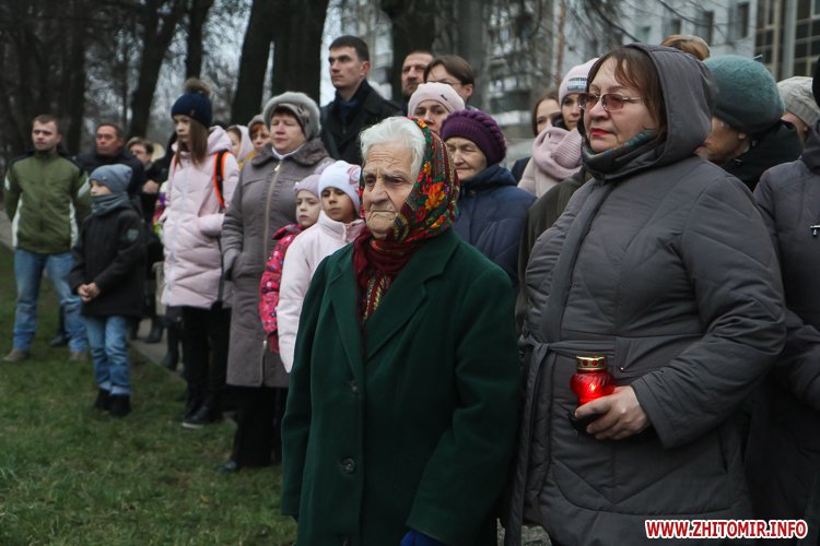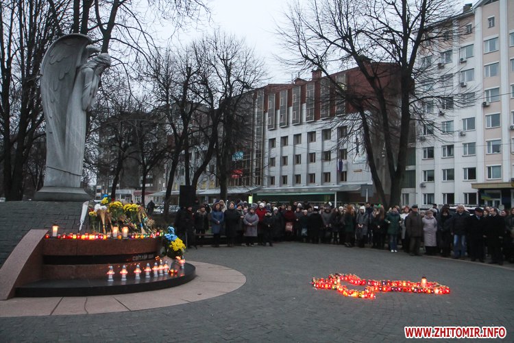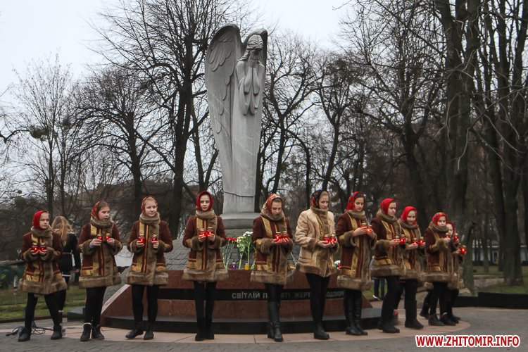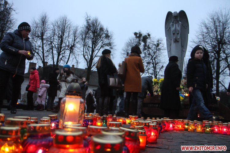 Кілька сотень людей прийшли у День пам’яті жертв голодоморів 25 листопада до пам’ятного знаку «Сумуючий Янгол», що на майдані Путятинському у Житомирі.