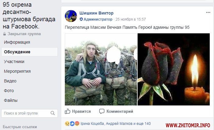 25 листопада у зоні проведення антитерористичної операції загинули двоє бійців житомирської 95-ї десантно-штурмової бригади.