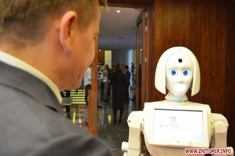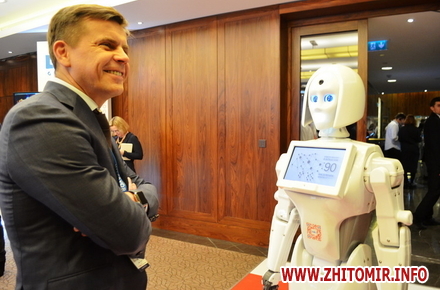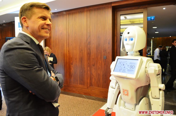 Мер Житомира Сергій Сухомлин поспілкувався з роботом КІКІ на Міжнародному саміті мерів.