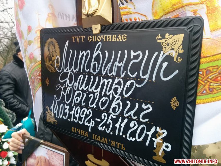 29 листопада у селі Крученець Черняхівського району Житомирської області прощаються з бійцем 95 бригади Дмитром Литвинчуком, який 25 листопада загинув у зоні АТО.