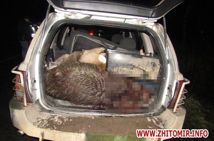 «У ніч на 29 листопада група швидкого реагування поліції затримала автомобіль під керуванням рівнянина, у салоні якого виявили туші вбитих диких тварин. Попередньо, чоловік з товаришами займався незаконним полюванням у Липинському лісництві у Новоград-Волинському районі», - повідомляє відділ комунікації.