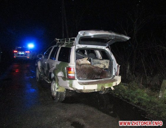 За даними поліції, близько 4.20 ранку 29 листопада до Новоград-Волинського відділу надійшло повідомлення з Городницького лісового господарства про виявлення факту незаконного полювання на диких тварин поблизу с. Липине. Єгері повідомили, що кілька чоловіків утекли з місця події на автомобілі Jeep Grand Cherokee.