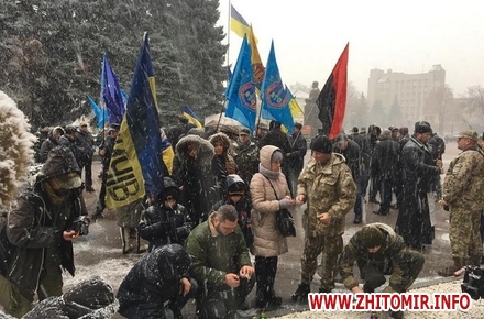2 грудня житомирські волонтери, учасники АТО та «майданівці» пройшлися ходою від меморіалу Героям Небесної сотні на майдані Корольова до постаменту з іменами загиблих героїв АТО біля будинку правосуддя.