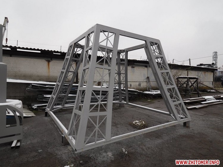 «Ейфелева вежа у житомирській транскрипції) Довго шукали місце для цього подарунку місту від коростенського підприємця. Нарешті знайшли у центральному парку. Ця 22-х метрова споруда повинна зафіксувати та підсилити ефект пішохідного мосту та стати чудовою локацією для фотосесій», – написав чиновник.