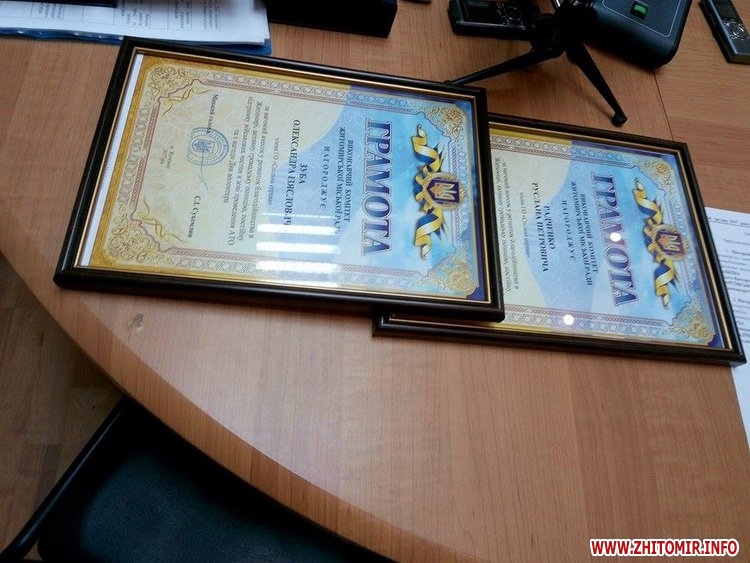 Вручення відбулося на початку чергового засідання виконкому Житомирської міської ради 6 грудня.