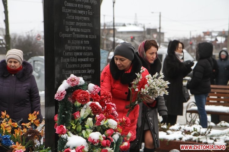 У Житомирі декілька сотень людей зібралися 6 грудня на Смолянському військовому кладовищі, щоб вшанувати пам'ять полеглих бійців. Військовослужбовці, волонтери, родичі загиблих та представники влади принесли квіти на могили загиблих Героїв. Представники різних конфесій об’єдналися у спільній молитві. Військовослужбовці зізнаються: від початку бойових дій на сході вони постійно приходять 6 грудня до могил побратимів, а також відмовляються від будь-яких святкувань.